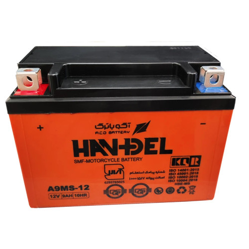باتری موتورسیکلت 9 آمپر پهن برند هندل مناسب برای ان اس RS بنلیتماس بگیرید