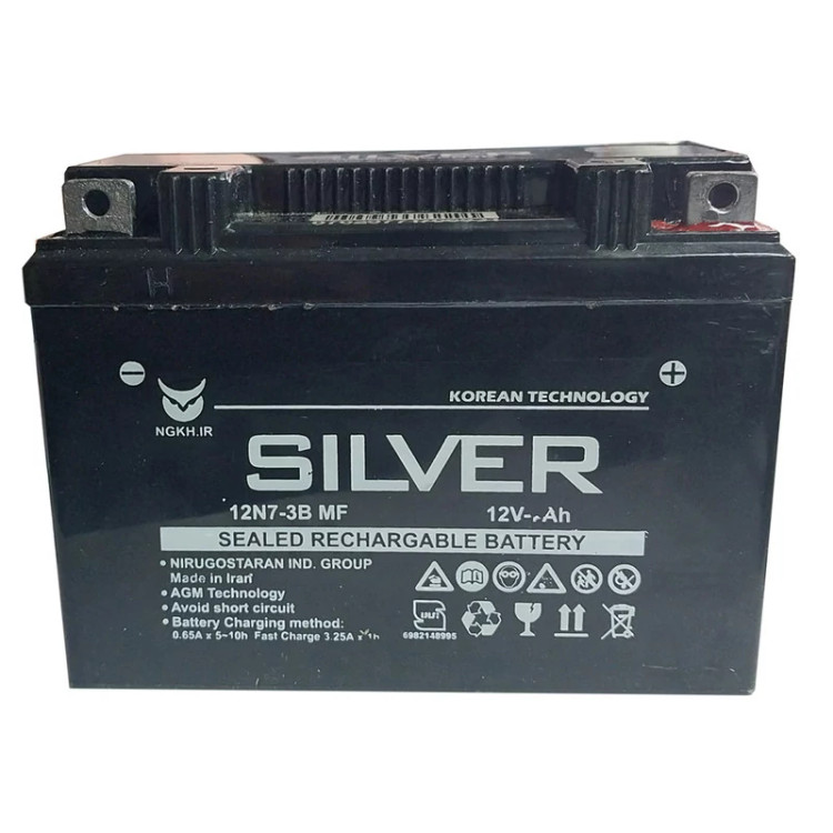باتری موتورسیکلت سیلور مدل 12N7-3B MF 12V-7AH