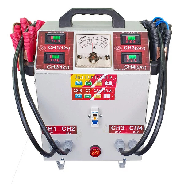 شارژر سریع و اتوماتیک انواع باتری های خودرویی، موتوری و یو پی اسی. شارژ همزمان 2 باتری 12 ولت و 2 باتری 24 ولت ( برای انواع باتری های 12 و 24 ولت موجود در بازار). دستگاه شارژ باطری اصلترونیک می تواند انواع باتری 12 ولت و انواع باتری 24 ولت را برای انواع خودروهای سواری و ماشین آلات کشاورزی و سنگین شارژ کند. این دستگاه قابلیت شارژ 2 باتری 12 ولت و 2 باتری 24 ولت را با بواسطه سیستم پرقدرت شارژ خود شارژ کند. همچنین قابلیت نمایش ولتاژ باتری ها به صورت مستقل را در حالت شارژ و بدون اتصال به برق دارا است. این شارژر با استفاده از آخرین تکنولوژی سوئیچینگ روز دنیا جریان شارژ باتری را متناسب با ظرفیت و میزان شارژ اولیه ی باتری مشخص می کند. جریان شارژ ( 30A تمام اتوماتیک) رفته رفته با توجه وضعیت باتری کاهش داده شده و سرانجام پس از شارژ کامل جریان شارژ قطع خواهد شد. این شارژر دارای نمایشگر دیجیتال ولتاژ باتری در حال تست بوده و لحظه به لحظه مقادیر ولتاژ باتری را ثبت کرده و متناسب با آمپر کشی از دستگاه تغییر یافته و کمتر خواهد شد. برای شروع شارژ باتری کافیست برق دستگاه وصل شده و کلید شارژ روشن شود. با اتصال گیره های دستگاه به دو سر باتری ها (قدرت : 4 باتری همزمان) وضعیت شارژ هر باتری به طور مستقل باتری با ولتمتر های دیجیتال و آمپر متر آنالوگ مشخص می شود. همچنین دستگاه دارای کلید فیوز صنعتی برای مقابله با جریان کشی بیش از حد از دستگاه را دارا است که در مواقع اضطراری از آسیب دیدن به دستگاه جلوگیری می کند. این دستگاه برای هر 4 باتری داری گیره هاری جدو می باشد مشخصات فنی محصول: ** مشخصات ** ابعاد: 26x26x21 سانتیمتر وزن: 6 کیلوگرم ویژگیهای تجهیزات تعمیرگاهی: عیبیابی موتور, کاربرد خانگی, کاربرد صنعتی سایر توضیحات: ولتاژ برق مورد نیاز : 220 ولت شارژ باطری : 12 ولت و 24 ولت مقاوم دربرابر بار اضافی ، شارژ همزمان چند باطری، قابلیت توقف پس از شارژ باطری، دارای نمایشگر آنالوگ ( آمپر متر ) و نمایشگر دیجیتال برای هر باتری زیر شارژ به صورت مستقل و جداگانه بدین صورت که آمپر متر در ابتدا مقدار جریان بالا را نشان میدهد و رفته رفته با شارژ باتری جریان شارژ کاهش پیدا می کند و عقربه کاهش پیدا می کند. ولتمترهای دیجیتال نشانگر میزان شارژ در ابتدا بوده و مقدار ولتاژ باتری که شارژ کمی دارد عدد کمتری را نشان می دهد که رفته رفته با شارژ باتری مقدار ولتاژ باتری زیر شارژ تا مقدار 14.6 ولت برای باتری 12 ولت و 28.8 برای باتری 24 ولت افزایش پیدا می کند که حالت فول شارژ است. همچنین دستگاه قابلیت شارژ اتوماتیک - کنترل شده و سریع( جریان شارژ 30 آمپر) را دارا است و می توانید تست دینام خودرو را نیز با این دستگاه انجام دهید.
