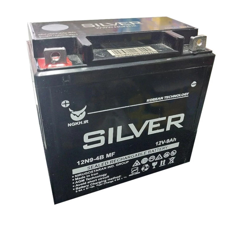 باتری موتورسیکلت 12 ولت 9 آمپر سیلور مدل 12N9-4B بلند