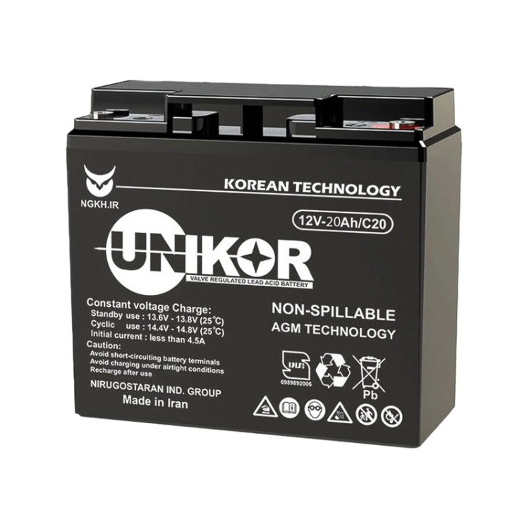 باتری 12 ولت 20 آمپر یونیکور مدل یو پی اس مشخصات فنی محصول: ** مشخصات ** قابلیت شارژ مجدد: دارد ویژگیهای خاص: دارای شارژ اولیه, بدون نیاز به نگهداری شدت جریان (آمپراژ): 20 ویژگیهای باتری موتورسیکلت: خشک (اتمی) مناسب برای: مناسب برای انواع دستگاه های یو پی اس و موتور برقی و ویلچر برقی ولتاژ دستگاه: 12