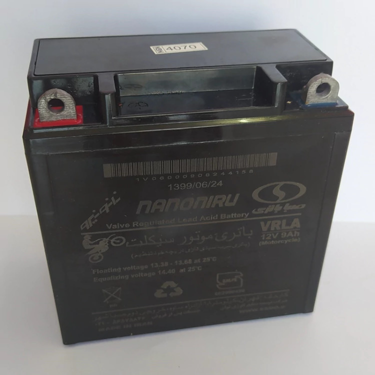 باطری موتورسیکلت 12 ولت 9 آمپر بلند مناسب برای موتور سیکلت ( پالس / آپاچی / پولسار و...) +دارای کیفیت و طول عمر بالا + قدرت استارت زنی عالی + از نوع اتمی