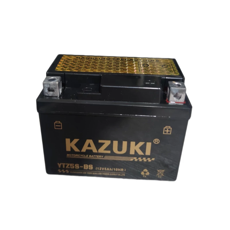 باتری موتورسیکلت 12 ولت 5 آمپر کوتاه کازوکی خارجی ساخت کشور چین تحت لیسانس ژاپن مناسب باطری موتور ویو ، طرح ویو و پاکشتی ، با قدرت استارت بینظیر و طول عمر مناسب و پایداری بالا است.