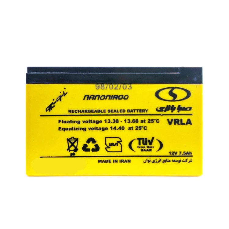 باتری یو پی اس 12 ولت 7.5 آمپر ساعت صبا باتری مدل 12SB7.5