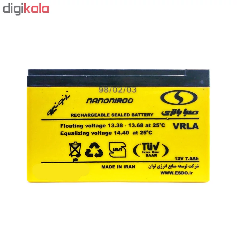 باتری یو پی اس 12 ولت 7.5 آمپر ساعت صبا باتری مدل 12SB7.5