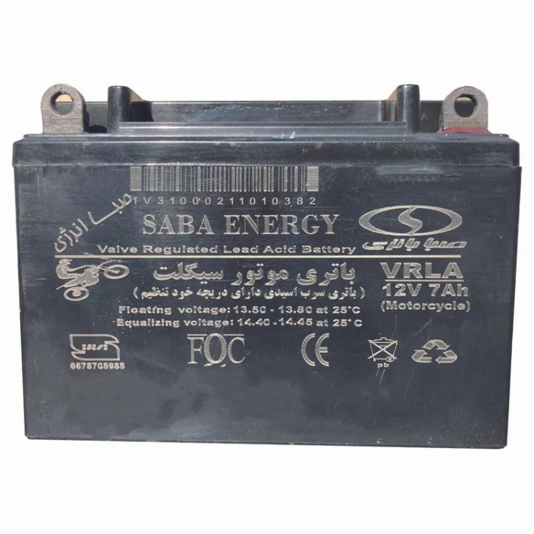 باطری موتورسیکلت صبا باتری مدل 7 آمپر 12 ولت استارتی هوندا ۱۵۰ ۲۰۰