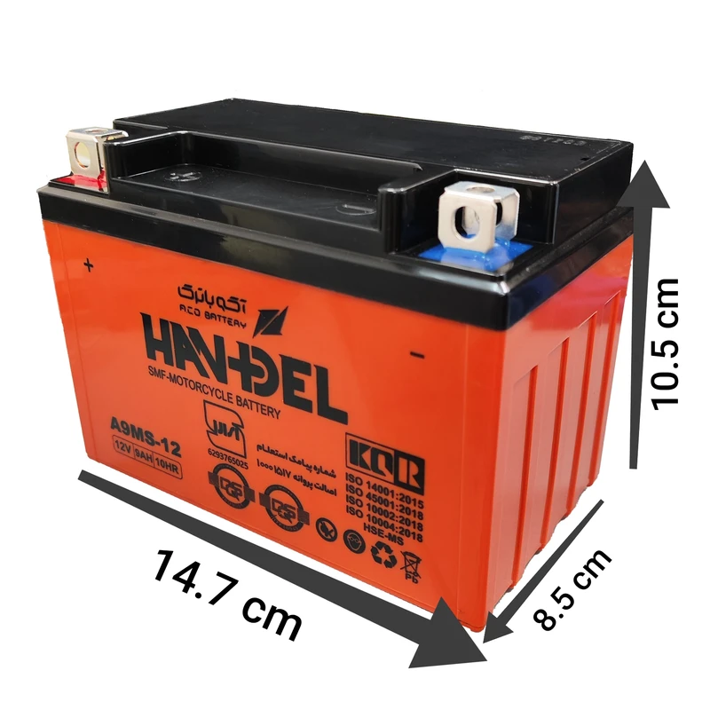 باتری موتورسیکلت 9 آمپر هندل تولید شده توسط شرکت آکوباتری، با بهرهگیری از دانش فنی روز اروپا و تکنولوژی پیشرفته، تضمینکننده عملکردی پایدار و بینقص برای موتورسیکلت شماست. این باتری با ظرفیت ۹ آمپر ساعت، یک انتخاب ایدهآل برای موتورسیکلتهای استارتی (برقی) با نیاز متوسط تا بالا به جریان الکتریکی است.