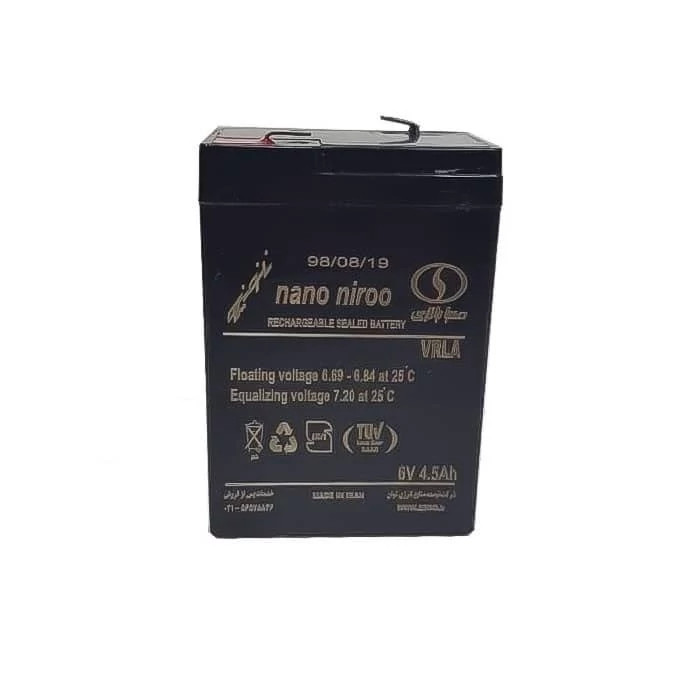 + باطری 6 ولت 4/5 آمپر + قدرت استارت زنی بالا + کیفیت عالی + مناسب برای موتور شارژی ,ترازو , چراغ قوه و..