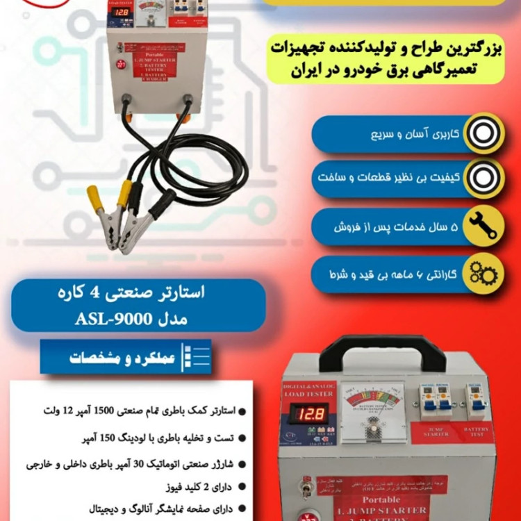 دستگاه استارتر صنعتی 4 کاره باطری (استارتر ،شارژر ،تستر) باتری