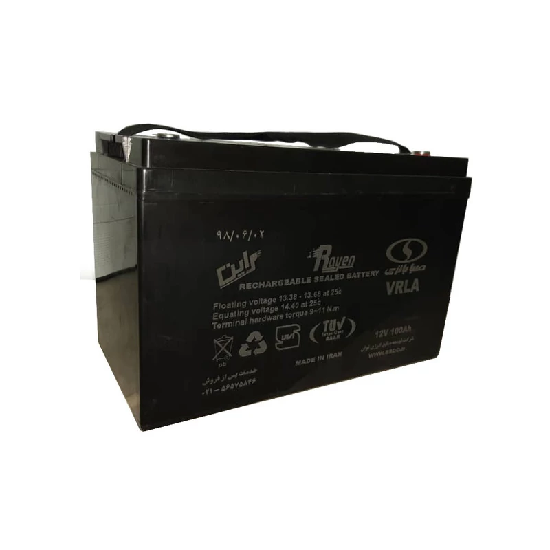 باتری یو پی اس 12 ولت 100 آمپر ساعت صبا باتری مدل 12SB 100 مشخصات فنی محصول: ** مشخصات ** وزن: 32000 گرم ولتاژ نامی: 12 ولت حداکثر جریان شارژ: 100 آمپر