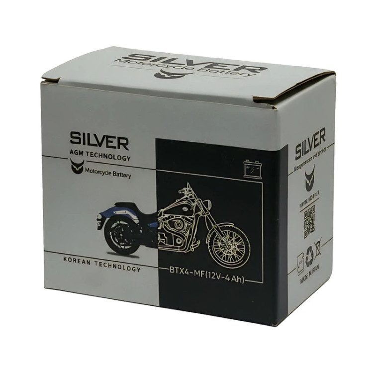 باتری موتورسیکلت 12 ولت 4 آمپر سیلور مدل کوتاه